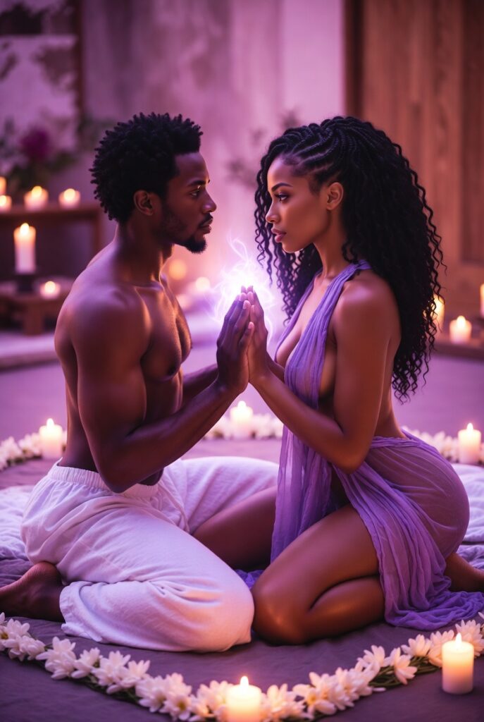 Slow, spiritual erotic massage. Deep breathing, eye contact, gentle energy touches. Warm oil and teasing build tension for ages. Final release is the longest, most powerful climax – body and soul connected.